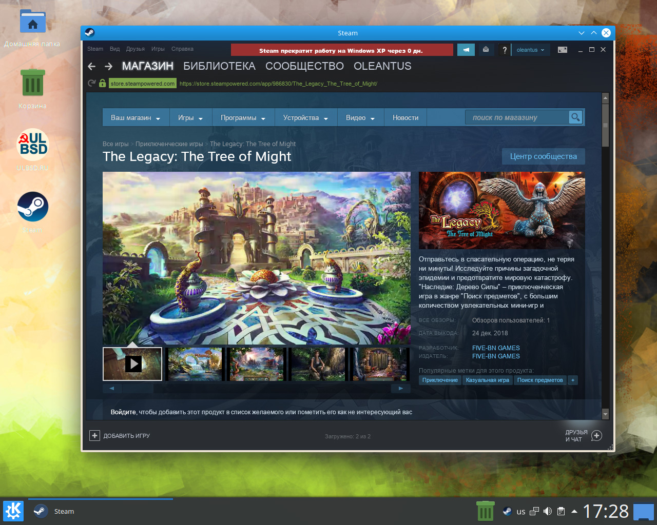 Ещё одним интересным, но более сложным вариантом, является установка клиента платформы Steam. В Ульяновск.BSD можно установить Windows-клиент Steam в трансляторе wine. Конечно далеко не все игры можно установить в таком варианте, но некоторые игры, в том числе и бесплатные, прекрасно работают. Итак, сначала необходимо установить wine и winetricks: