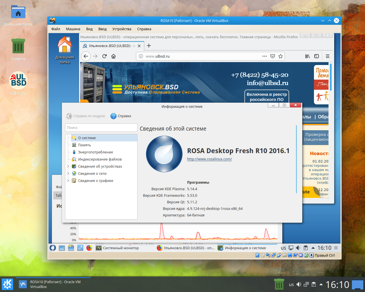 Рассмотрим установку, запуск и одновременную работу Linux-совместимой операционной системы ROSA Fresh R10 с рабочим столом PLASMA 5 в Ульяновск.BSD. Для начала необходимо скачать ISO-образ ОС ROSA Fresh R10 с сайта НТЦ ИТ РОСА и установить VirtualBox: