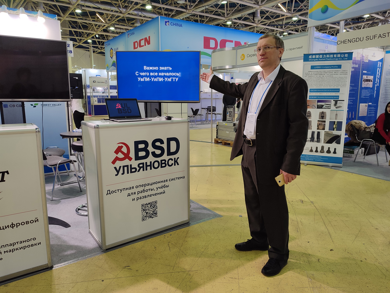 При поддержке АНО «Региональный центр поддержки и сопровождения предпринимательства» (г. Ульяновск) и Фонда развития информационных технологий Ульяновской области на выставке была организована коллективная экспозиция продуктов ИТ-компаний Ульяновской области. В их числе была представлена и операционная система Ульяновск.BSD (ULBSD).
