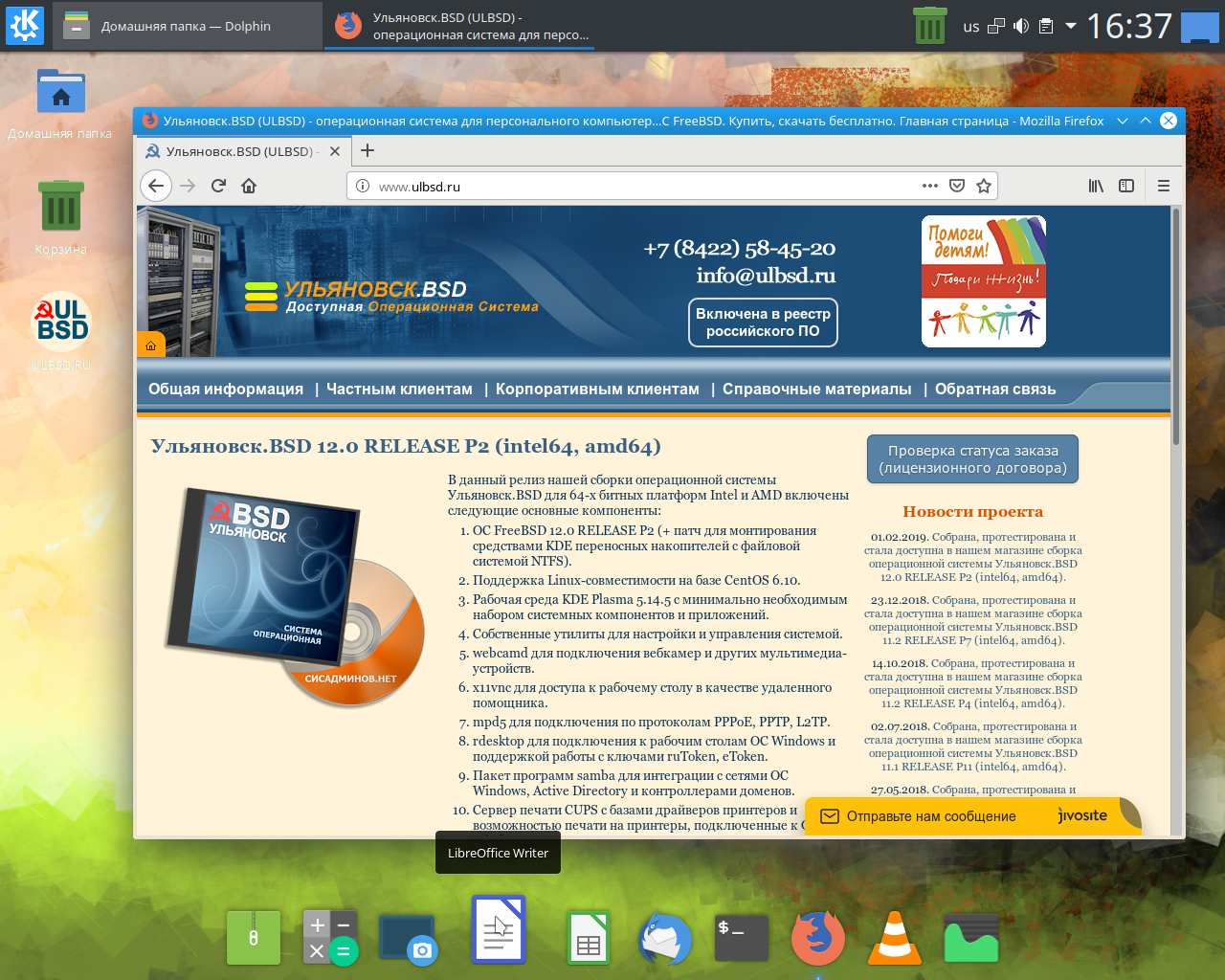 В данный релиз нашей сборки операционной системы Ульяновск.BSD для 64-х битных платформ Intel и AMD включены следующие основные компоненты: